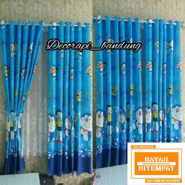 Jual Gorden Jendela Pintu Karakter Doraemon Warna Biru Muda Model Smokring Jakarta Barat Algrosir Tokopedia