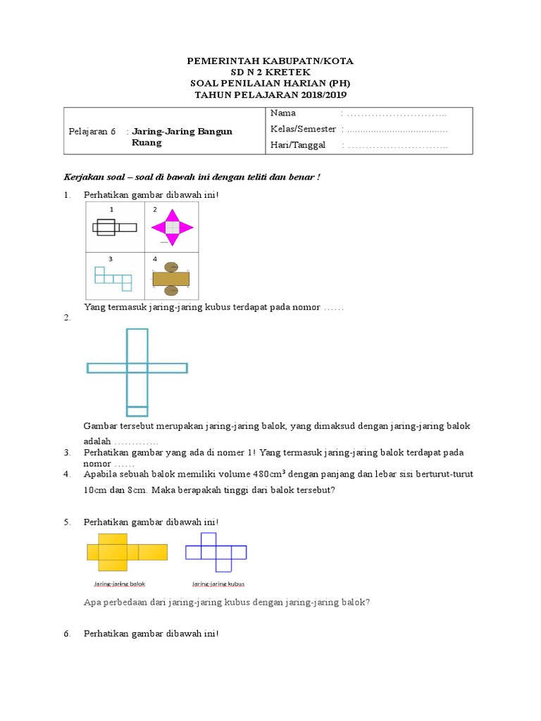 Berbagi Informasi Untuk Bersama Soal Penilaian Harian Matematika Kelas 5 Semester 2 Jaring Jaring Bangun Ruang
