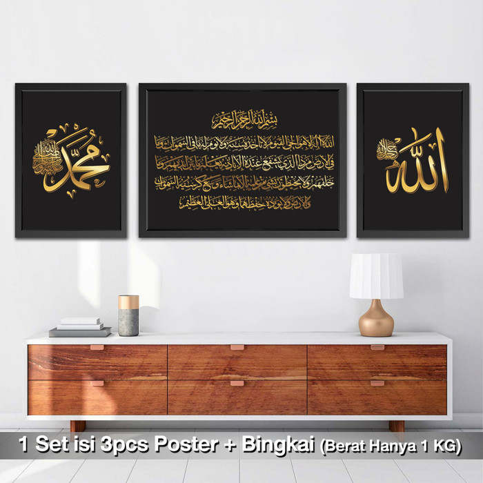 Jual Kaligrafi Allah Muhammad Ayat Kursi 28 Poster Pajangan Hitam Gold Kab Bogor Om Bewox Tokopedia