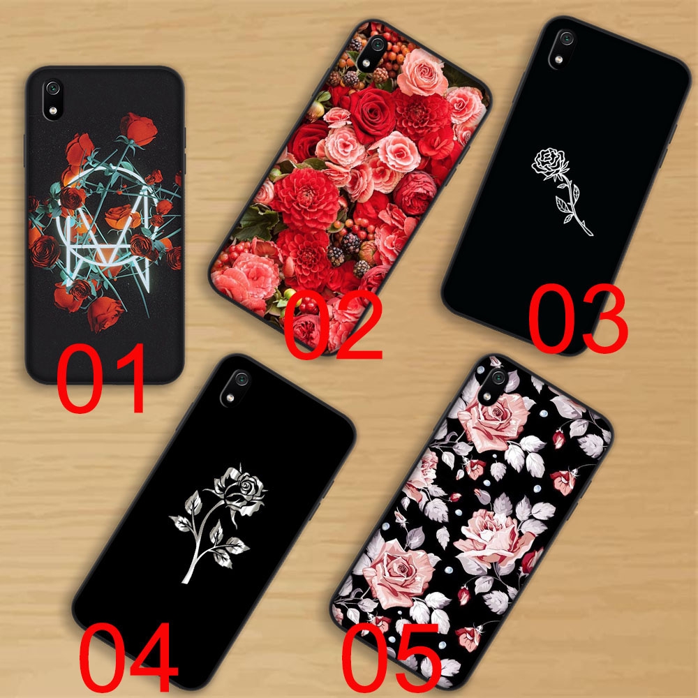 Casing Soft Case Warna Hitam Motif Bunga Mawar Untuk Xiaomi Redmi Note 6 7 Pro 6a 7a Shopee Indonesia