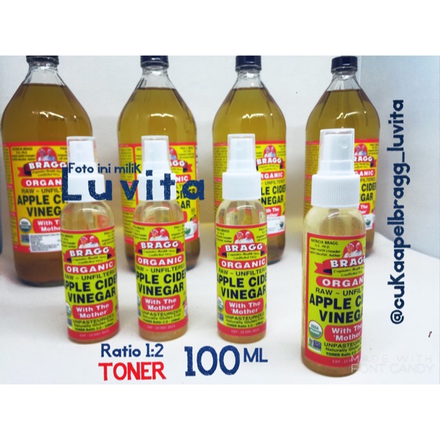 Toner Cuka Apel Bragg Apple Cider Vinegar 100ml Campuran Air Ratio 1 2 Shopee Indonesia